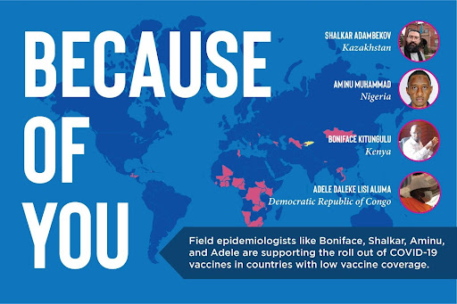Because of your donation today, epidemiologists like Boniface, Aminu, Shalkar, Adele and other partners are able to help people in all countries protect themselves and their communities from the virus and end this pandemic.