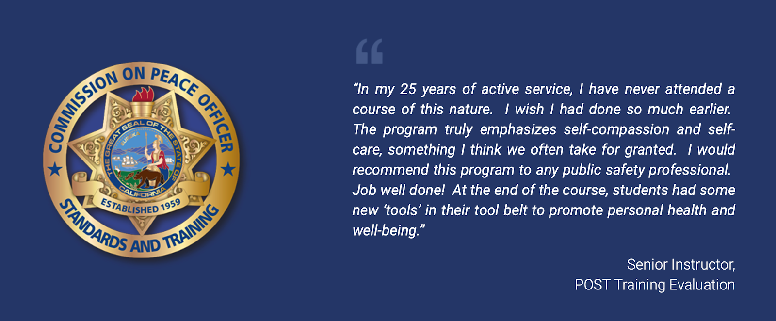 We look forward to continuing to be of service to law enforcement throughout the State of California, including sworn and non-sworn officers, dispatchers, and professional staff.