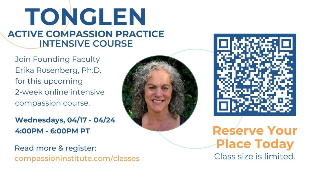 You’re invited to join Erika Rosenberg, Ph.D. for her online Active Compassion Practice: Tonglen Intensive Course — taking place April 17th & 24th, 2024.