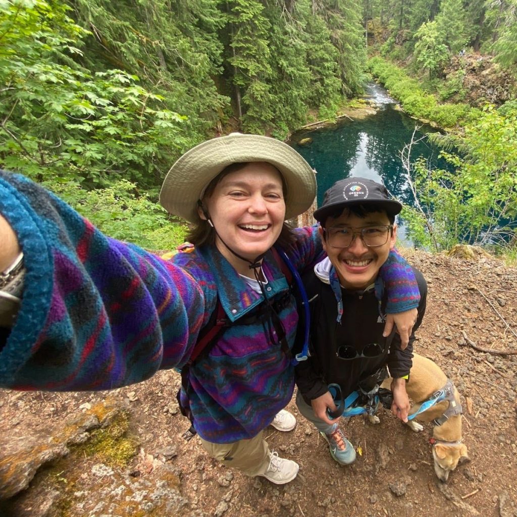 Tori, her husband, Justin, and their dog, Bowie, hiking in Central Oregon.